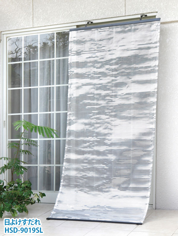 涼やか日よけすだれシリーズ●日よけすだれ(ベージュ)シリーズ●日よけすだれ(ストライプ)シリーズ●日よけすだれ(シルバー)シリーズうれしい省エネ&UVカット効果表面のアルミ蒸着層が日射熱をはね返し、日差しや紫外線をカットする日よけすだれです。日差しはカットしつつ、織り目から風が通るので、熱がこもりにくくなっています。エアコンの効率もアップするので、省エネにつながります♪室内からは外が見え、外からは日光の反射により見えにくい構造になっています。※ただし、夜間は室内が明るいと外から見えますのでご注意ください。屋外用の遮光、遮熱用資材を使用し、耐久性に優れています。◆商品サイズ(約):幅90×高さ190cm◆重量:約300g◆UVカット率:64%◆遮光率69%◆材質 スクリーン:アルミ蒸着ポリエチレン 桟:ポリスチレン 吊り下げフック:ポリプロピレン★関連商品★HSD-6060SLHSD-6095SLHSD-9013SLHSD-9019SLHSD-1719SL