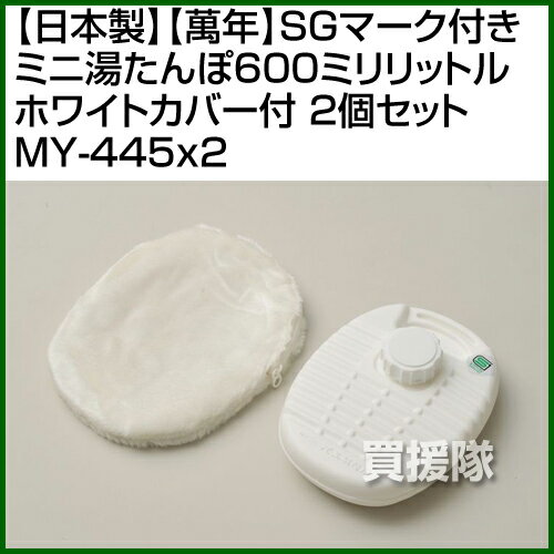 納期について:メーカー直送品(代引き不可)【送料無料 保温 カイロ 節電 エコ 省エネ 停電対策 本体 新品 価格 通販】日本製ポリ湯たんぽ容量600ミリリットルに、すぐにご使用できるカバー付セットミニサイズなので、職場やご家庭で場所を選ばずご使用できます。柔らかい起毛仕上げの繊維素材カバー付(洗濯可能)SGマーク(対人賠償責任保険付) 商品特徴 仕様品名 萬年 SGマーク付きミニ湯たんぽ600ミリリットルホワイトカバー付2個セット品番 MY-445x2重量(1個あたり) 270g(カバー含む、お湯入れないとき)【本体サイズ】(1個あたり) タテ20cm×ヨコ15.5cm×厚さ6.6cm【材質】 ・本体 ポリエチレン、日本製 ・カバー 表地ポリエステル35%アクリル65%、裏地ポリエステル、中国製【正味容量】(1個あたり) 600ミリリットルその他 SGマーク(対人賠償責任保険付) こちらの商品は北海道・沖縄・離島は別途送料お見積もりとなります。ご購入前にご連絡をお願い致します。