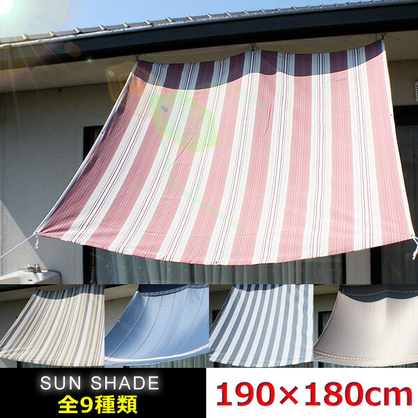 サイズ巾190×丈180cmUVカット率約93%以上 素材シート/ポリエステル100%付帯ヒモ/ポリエステル100%ハトメ/アルミ製 生産地中国機能サンシェード/オーニング/UVカット/撥水/日除け/雨除け/目隠し/省エネ/取付ヒモ付/あす楽/送料無料 洗濯洗濯できます。 内容1枚直射日光を避ける日除け効果抜群のサンシェード(オーニング)を発売。雨でも安心な撥水加工を施した生地から作製したので質感の良好。取り付け方は簡単で付属の取付ヒモをご利用ください。風の強い日はスクリーンを外して下さい。スクリーンをしっかり紐で固定して下さい。.text1 {font-size: 16px;color: #FFF;line-height: 20px;background-image: url(http://image.rakuten.co.jp/sunrose/cabinet/it5/item_b2.jpg);font-weight: bolder;padding-top: 10px;padding-right: 0px;padding-bottom: 10px;padding-left: 10px;}サンシェード(オーニング)撥水加工 全9種類 サイズ:巾190×丈180cm パラス (ブラウン/オレンジ) マリノ (グリーン/ネイビー/イエロー) モデナ (エンジ/グリーン) カルロ (ベージュ) ファラオ (ネイビー)取付ヒモが付属されていますこちらの商品には、取り付け紐が12メートル付属されています。お好みの長さに切ってご利用下さいませ。サンシェードシリーズ 一覧 <縦横の方向を変えてもご利用になれます>UVカット率93%全9種類幅190×丈180cm通常 4,000円価格 1,980円送料無料⇒ 詳細はこちら幅90×丈180cm通常 3,000円価格 1,480円送料無料⇒ 詳細はこちらUVカット率100%アルミコーティング加工幅190×丈180cm通常 6,000円 価格 2,980円送料無料⇒ 詳細はこちら幅90×丈180cm通常 4,000円 価格 1,980円送料無料⇒ 詳細はこちら