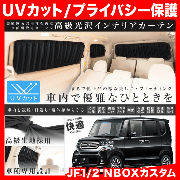▼ 商 品 適 合 ▼ 車 名 型 式 年 式 備 考 内 容 NBOXカスタム JF1/2 H23.12〜 ※訳あり(フロントが少し突っ張った感じの装着になります) 10P枚入り 内 容 詳 細 10Pピースセット1列目:2枚2列目:4枚リアクウォーター用:2枚リアゲート用:2枚 製品の主な特徴 日差し・UVカット仕様!プライバシー保護にも最適!光沢生地を採用したインテリアカーテン★季節を選ばず、オールシーズン大活躍★・車内をまるでリビングルームの様なプライベート空間に!・日差し・紫外線カット生地により、大切なお肌を守ります!・夏は涼しく、冬は暖かく、保温保冷効果で燃費向上!・盗難や車上荒し等の防犯に!■光沢ある質感の生地を採用手触りの良い柔らかな質感の生地を採用。ギャザー風加工で閉じていても美しい見た目に。■各車種の窓のサイズで採寸弊社のカーテンは嬉しい窓枠サイズ。汎用品の使い回しではなく各車種の窓枠サイズで採寸。汎用品を1台揃えるには何セットも購入が必要ですので非常にお得な商品となっております。■簡単に取付可能取付方法は簡単。レールを窓サイズにハサミでカットし、レールを粘着テープで仮止めし、位置が決まったら付属のビスでしっかり固定。あとはレールにカーテンを取付エンドキャップを閉めて完成。※レールの両面テープは付属しておりますが、猛暑により外れる事例が報告されております。耐熱性の高い両面テープはお客様でご用意ください※運転席と助手席のカーテンは危険防止の為、先端部分までではなく平行部分のみ※遮光カーテンではないため遮光性はありません※写真は夜間に撮影、あくまでイメージです、参考までにご参照ください 送料・納期・同梱について 送料について レビューを書いて!送料無料キャンペーン実施中!!※沖縄・離島はお問い合わせください 納期について ご注文当日、若しくは翌営業日発送。一時的に欠品している場合は、多少お時間を頂く場合があります。 同梱について ・送料別のLED商品やHIDバルブと同時にご購入頂いても送料無料になりお得!・もちろんLED商品を何点ご購入頂いても同梱OK! さらに代引手数料もまとめてお支払い可能!※沖縄離島はお問い合わせ ※ベレッツァ・ルーツ・ディオーム・D-MAX・ORIGIN・セレオス等のブランド製品は同梱不可※その他当社指定の同梱不可の商品とは同梱不可 注意事項 お客様理由(思っていたのと違う/購入間違い等)での返品交換不可本製品による事故/災害/破損/改造/分解/工賃/代車代/車両損害/第三者からの請求には当社は一切保証・負担できません・走行中は視界のさまたげになりますので運転席側と助手席側のカーテンを必ず開けて走行してください・生地の伸び縮みによるシワが生じる場合あり・縫製誤差により隙間が発生する場合あり(約±10mm)予めご了承ください・当商品は輸入品の為、多少の汚れ、スレがある場合がございます・カーテンは各窓に合わせたサイズになっていますが、方形で完全に窓の形状になっている訳ではありません・ある程度ストレッチして取り付ける必要がある場合が御座います・レールはお車に合わせてカットして頂く必要が御座います・確実に固定いたい場合は必ず付属のタッピングビスで固定してください 【あす楽対応_近畿】【あす楽対応_関東】【あす楽対応_甲信越】【あす楽対応_北陸】【あす楽対応_東海】【あす楽対応_中国】
